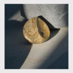 The Celestial Dance is a masterwork of abstract minimalism, finding inspiration in the eternal rhythm of the heavens. Carved into a perfect 5-inch sphere, the sculpture utilizes the unique texture of Coquina Rock to represent the ancient, cratered surface of a celestial body. The stone’s natural inclusions of fossilized shells and minerals create a shimmering effect, as if catching the first light of a rising sun.