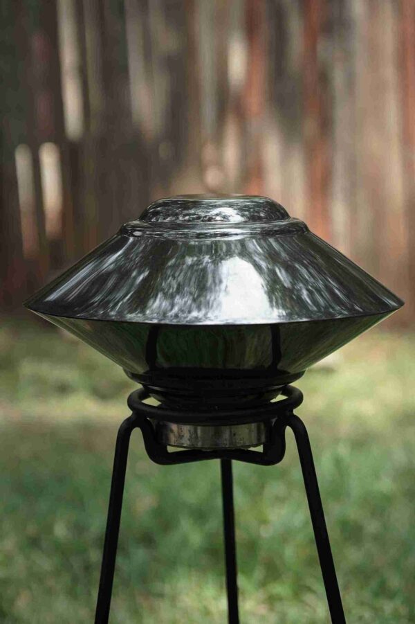 Celestial Nexus is a profound exploration of weight, motion, and the extraterrestrial. Meticulously carved from a singular, dense block of Black Granite, the sculpture is polished to a high-gloss finish that reflects its surroundings, mimicking the way a craft might catch the light of distant stars. The form itself is an homage to the “Unidentified Aerial Phenomenon,” featuring a perfectly balanced, disc-like silhouette that challenges the traditional rigidity associated with heavy stone.