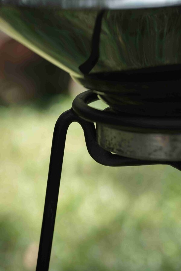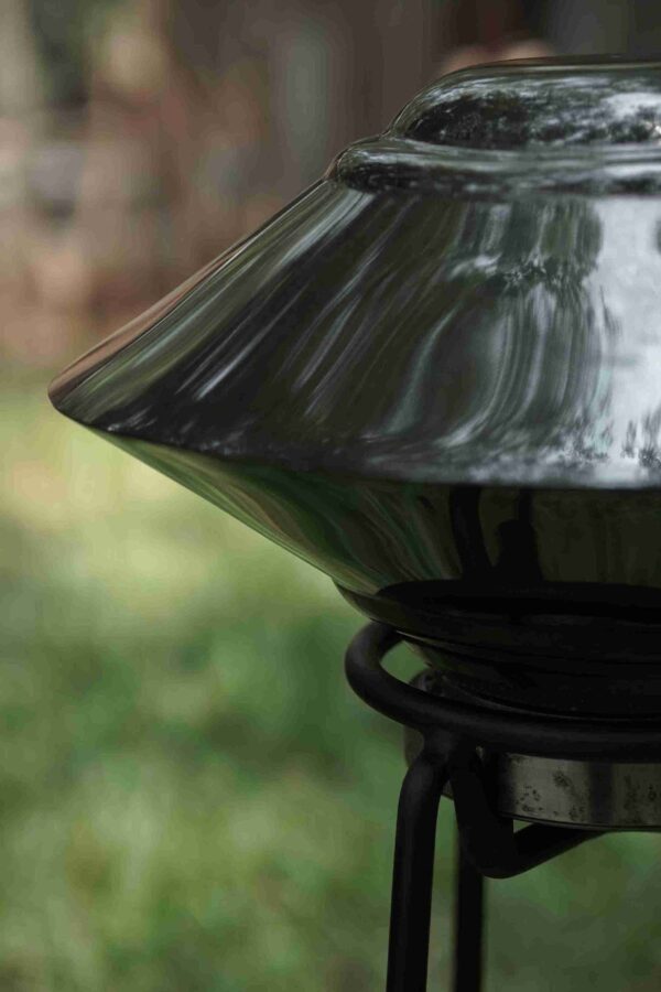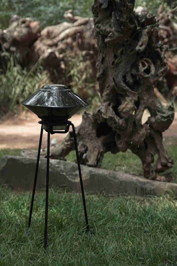The engineering of the piece is as remarkable as its aesthetics. At a staggering 150 kgs, the granite body is mounted upon a sophisticated assembly of MS (Mild Steel) rods and precision ball bearings. This allows the viewer to set the massive stone in motion with a mere touch, creating a silent, hypnotic rotation that evokes the orbital mechanics of the heavens. The “trio legs” of the metal base provide a minimalist, industrial contrast to the organic darkness of the granite, emphasizing the piece’s “hovering” appearance.