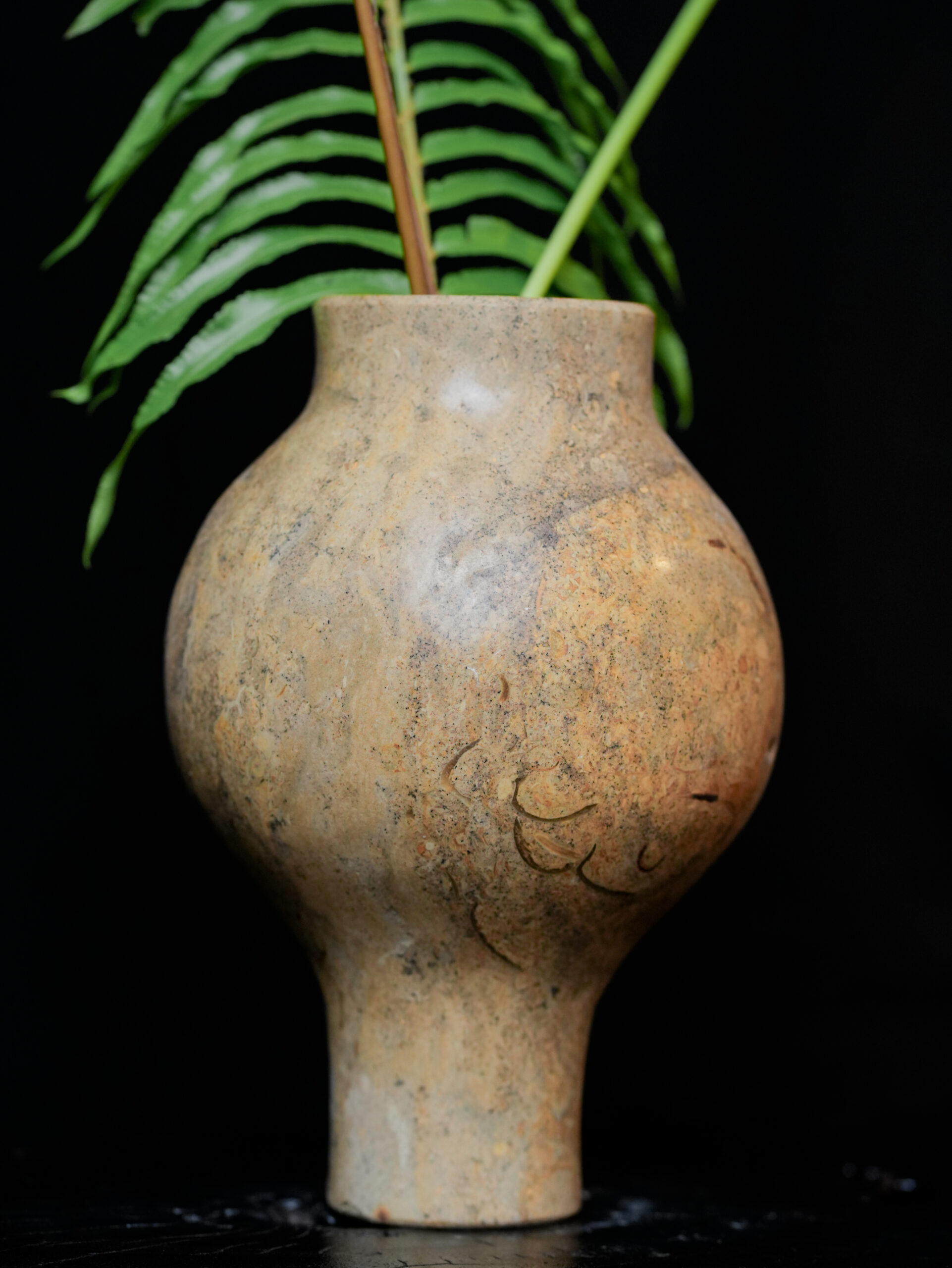 The surface of the globe is hand-polished to a soft, matte sheen that invites closer inspection of its natural artistry. Because glauconite is a complex mineral formed over millions of years, the vase acts as a physical record of the earth’s history, featuring intricate swirls of desert tan, muted sage, and oxidized amber. This natural marbling ensures that no two pieces are identical, providing a truly one-of-a-kind artifact for your home.