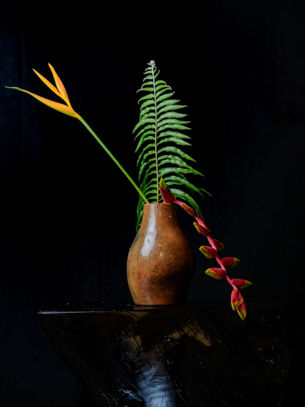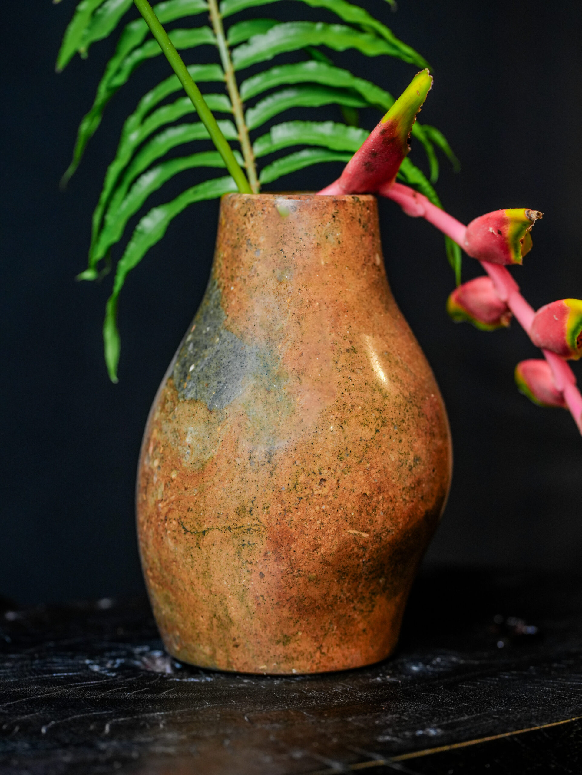 As part of our exclusive Limited Edition (VAS-GLOR) series, every Hourglass Vase is an individual creation; the specific mineral patterns and exact hue will vary from piece to piece, ensuring you own a truly one-of-a-kind artifact. Its weighted presence and precision-bored interior make it the ideal companion for architectural floral arrangements, such as the lush ferns and vibrant tropical blossoms shown in our collection. This vase is more than a functional object; it is a conversation piece that bridges the gap between raw, primitive nature and high-end contemporary design.