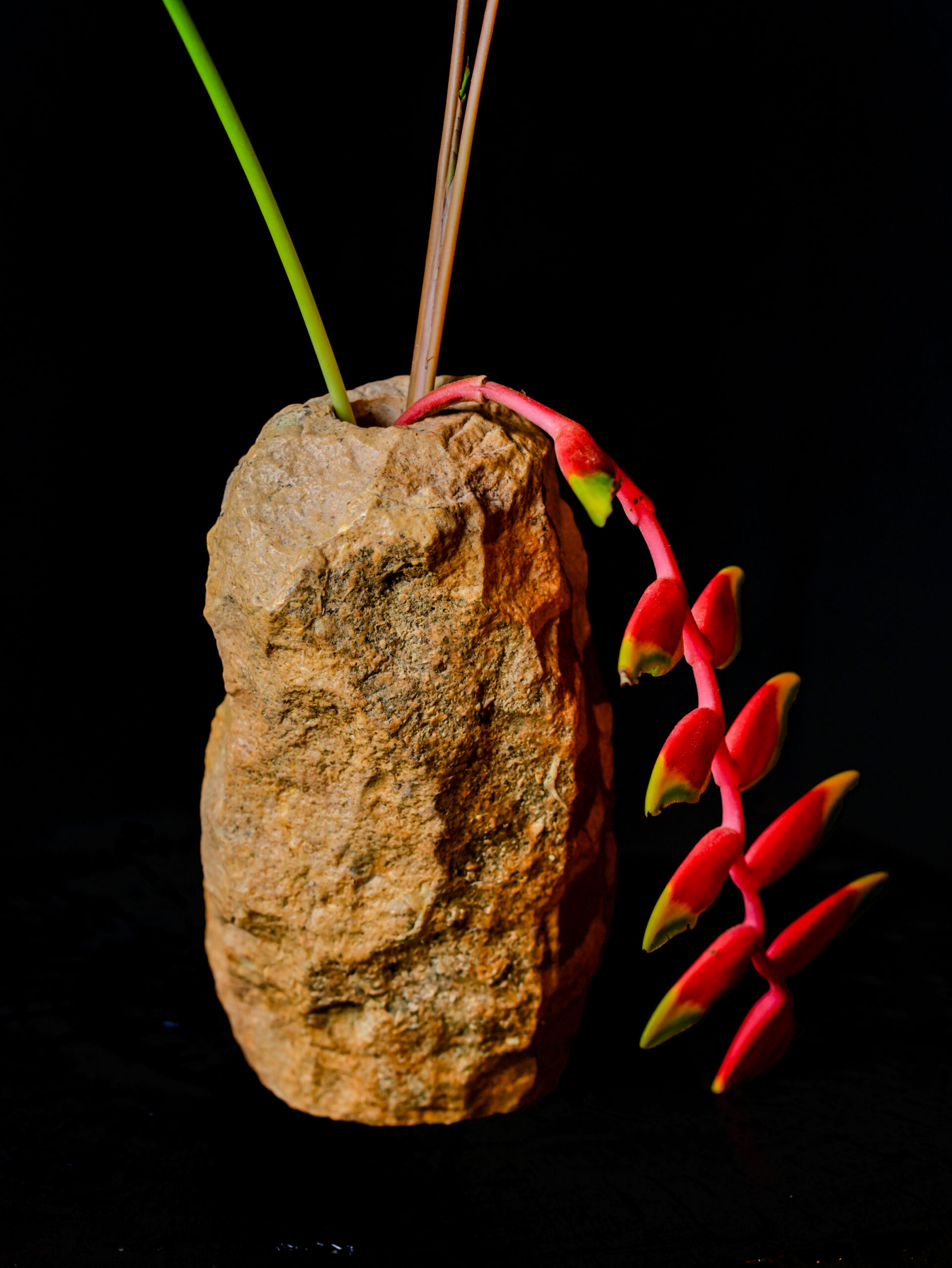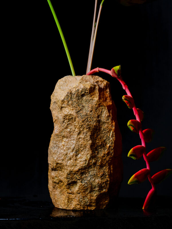 As part of our Limited Edition (VAS-GLOR) series, the Natural Monolith is designed for the bold decorator. It provides a striking, primitive counterpoint to the clean lines of contemporary glass and steel. Despite its wild exterior, the base is expertly leveled for stability, and the interior is bored to hold water and stems securely. Whether used to house a delicate tropical bloom—creating a stunning “beauty and the beast” contrast—or left empty as a stone totem, it serves as a powerful reminder of the enduring strength and silent history of the natural world.