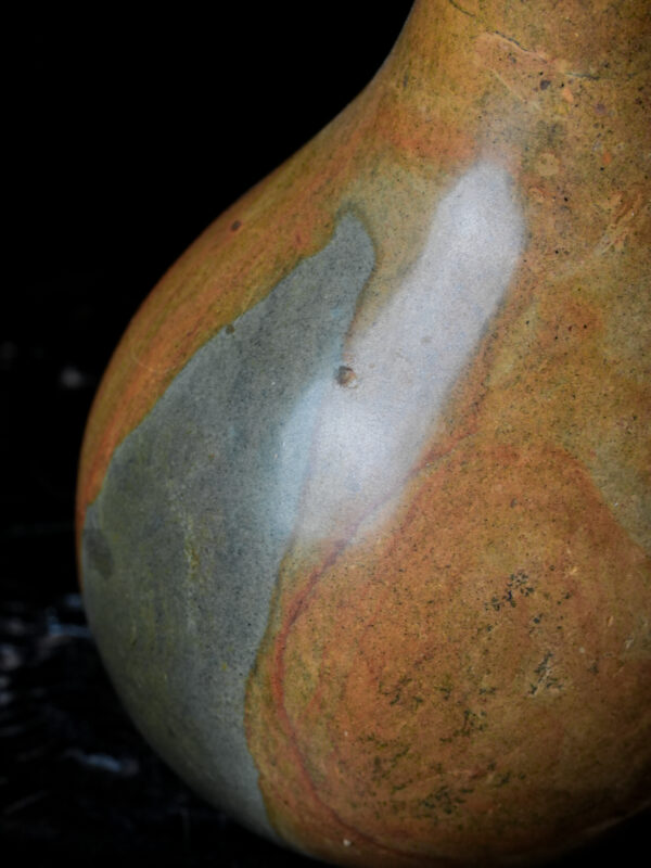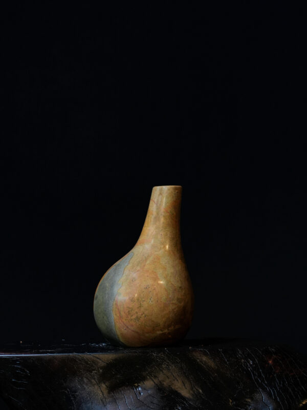 The Limited Edition Glauconite Rock Sloped Teardrop Vase is a testament to the beauty found in nature’s asymmetrical forms. Carved from a singular block of authentic glauconite, this vessel brings the quiet power of the earth’s deep history into the modern home. Standing at 8 inches high and 5 inches at its widest point, the vase is defined by its fluid, sweeping lines that mimic the natural erosion of river-worn stone.