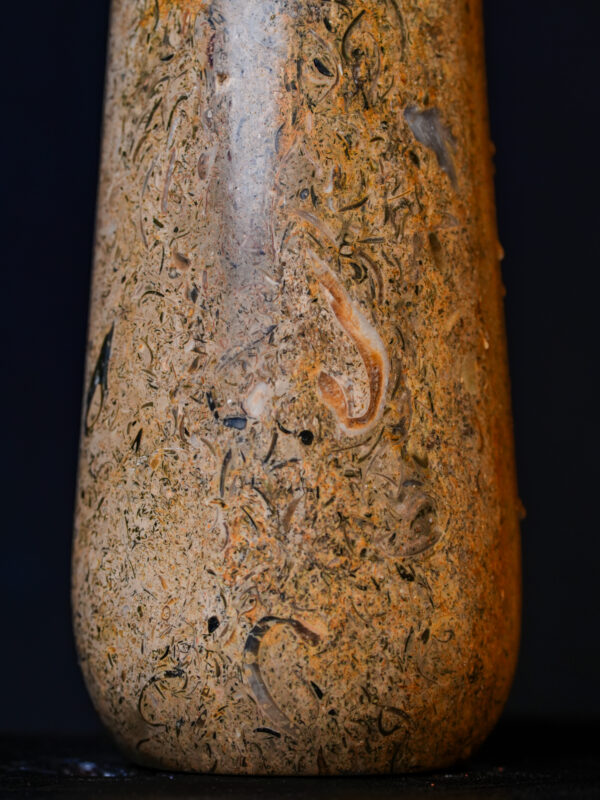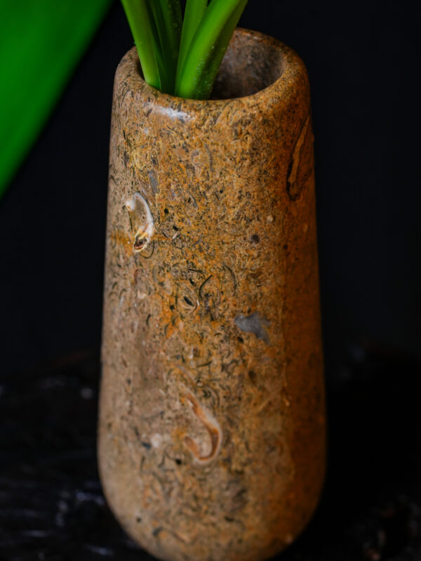 As a member of our Limited Edition (VAS-GLOR) series, this vase is a one-of-a-kind collector’s item. No two blocks of stone are identical, meaning the specific mineral veining and color transitions on your piece will be entirely unique. The vase’s interior is bored to accommodate slender stems or structural branches, though its silhouette is powerful enough to serve as a standalone sculpture. It is a perfect choice for those who wish to bridge the gap between raw, primitive nature and sophisticated, contemporary art.
